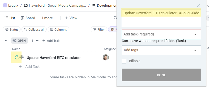 - Internal Projects: For non-client work, use the Lyquix Internal project to track your time.