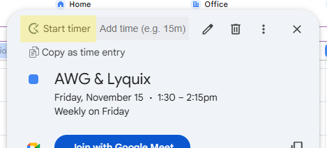 Clockify in Google Calendar: